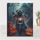 Tarjeta Motocicleta Pug Riding Halloween Scary