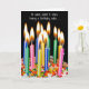 Cierre de velas de cumpleaños brillantes en un pastel con rociadas para envejecer. Se puede cambiar todo el texto.