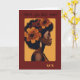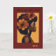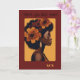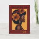 Tarjeta de felicitación única para el Día de la Madre con la cara de una hermosa mujer sobre fondo marrón. Tiene flores naranjas en su afro y aretes boho. En la parte delantera, puede ver el espacio de texto donde puede editar sus propios nombres o el texto que prefiera... "Te amo, etc...". Esto puede editarlo fácilmente.