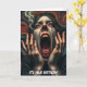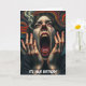 Mujer atormentada con tarjeta de cumpleaños de grito. Una tarjeta divertida sobre envejecer. Para una mujer o un hombre. Personalice esta plantilla para cambiar la imagen y el texto. Esta imagen de IA captura la cara angustiada de una mujer, contornada en un grito ensangrentado, rodeado de elementos fantásticos en una estética oscura, monótona e inquietante que recuerda el arte conceptual de fantasía y las obras de Edvard Munch.