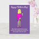 Dibujo divertido de una mujer que no se ha cortado el pelo desde que comenzó el confinamiento, agarrando una botella de vino y una copa de vino para celebrar su cumpleaños. El pie de foto dice 'Feliz Día de la Madre' y 'Mamá no se ha cortado el pelo desde el confinamiento, pero afortunadamente todavía podía ver lo suficiente para servir el vino'. Personalice fácilmente esta tarjeta editando el texto de la plantilla. ¡Gracias por ver mis diseños de dibujos animados!