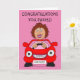 Tarjeta Mujer feliz que acaba de aprobar el examen de cond