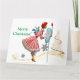 Navidades como se veía en los años 50 con esta obra de arte retro de una mujer vestida con un vestido de falda completa, rojo y verde.