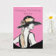 Tarjeta Mujer Retro Sombrero Negro Art Deco Cumpleaños Ros