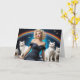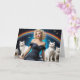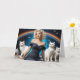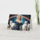 Tarjeta Mujer rubia gatos blancos en blanco en todas las o