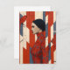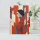 Tarjeta Mujer vestida con flores rojas y pájaro rojo