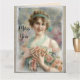 Tarjeta Mujer victoriana con rosas sobre fondo de acuarela