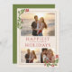 Tarjeta multifoto orientada al retrato con borde de follaje navideño colorido.