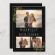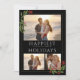 Tarjeta multipfoto orientada a retrato con borde de follaje navideño colorido.