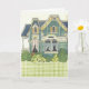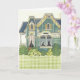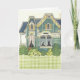 Tarjeta Muñeca de papel adorable con gingham en dormitorio