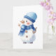 Tarjeta Muñeco de nieve con bufanda y sombrero azules acua