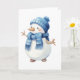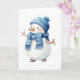 Tarjeta Muñeco de nieve con bufanda y sombrero azules en a