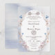 Comience su unión bendita en el nombre de Alá con esta elegante invitación de boda islámica floral. Con una hermosa caligrafía árabe de Bismillah Arrahman Arrahim, delicadas flores azules y suaves rosas, y un diseño de arco elegante, esta invitación combina la fe, el romance y la sofisticación atemporal.