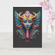 Make a bold statement with this stunning psychedelic deity mask design. Featuring sweeping golden horns, great feathered wings, and an ornately decorated face in rich teal, cobalt, violet and gold, this eye-catching print is packed with intricate detail that rewards a closer look every time.