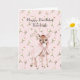 Tarjeta Nacimiento de ciervo dulce con flores de rosa rosa