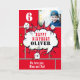 Tarjeta de cumpleaños de foto de niño de la burbuja del discurso cómico de Superhéroe rojo. Personalizado divertida y burbuja del discurso cómico en un fondo rojo. Añade tu foto y personalizar el nombre, edad, texto y mensaje dentro. Tarjeta de cumpleaños personalizado divertida para niños.