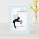 Deliciosa carta con un hada inclinada a escoger una flor para desear a alguien un cumpleaños feliz.