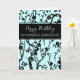 Tarjeta de cumpleaños para nieta con diseño moderno de flores turquesas y negras y verso reflexivo.