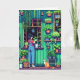 Tarjeta de cumpleaños para un amigo o familiar que ama las plantas. En el interior hay una página de color sorprendente. El frente si un píxel de arte es ilustracion de una dama regando sus plantas.