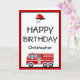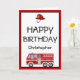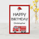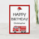 Tarjeta de cumpleaños de camión de bomberos para niños. Esta tarjeta de cumpleaños del personalizado incluye un motor de bomberos rojo y un gorra con la edad del niño.