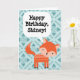 Esta adorable tarjeta de felicitación de nuestra colección Woodland Whimsy se puede personalizar fácilmente con el nombre de su destinatario y su mensaje dentro de la tarjeta utilizando los campos de relleno. Este diseño presenta un zorro rojo lindo en un naranja rojizo oscuro contra un fondo azul claro con motivos. Hace una tarjeta de cumpleaños para los niños o cambia el texto para usarla para una fiesta u ocasión diferente.