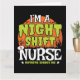 Este divertido diseño de meme de enfermera es una divertida idea de regalo de enfermera de novedad Halloween para una enfermera de urgencias del hospital, enfermera estudiante graduada, enfermera de UCI, enfermera matriculada de RN, enfermera de cargo u otro tipo de enfermera que trabaja como enfermera de turno nocturno cuidando a los pacientes. Cuenta con una luna con murciélagos, búho en un árbol y una silueta zombie con telarañas, cráneos y gráficos de enfermeras gorras. El meme de la enfermera "Soy una enfermera de turno nocturno, nada me asusta" es perfecto para una enfermera disfraz de Halloween o para la enfermera que ama las películas de terror.