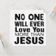 Nadie nunca te amará más que a Jesús, este diseño cristiano presenta un mensaje de texto en blanco y negro que dice: "Nadie te amará más que a Jesús".