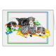 Esta familia Pastora Australiana se ha instalado para una siesta, los tres colores y los adultos de la merle azul están durmiendo rápidamente pero miren quién se queda - el pequeño cachorro de merle azul. Arte de perros de Danes-R-Us.