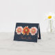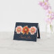 Tres hermosas flores de dalia rosa coral y naranja se colocan sobre un fondo de color marino. El texto en color naranja utiliza una tipografía de script atractiva. Las flores cubren la parte delantera de esta tarjeta, que puede utilizarse como tarjeta de agradecimiento al boda, tarjeta de cumpleaños o cualquier otra tarjeta de su elección. Personalízalo con tu texto y/o imágenes para convertirlo en uno de los tipos!