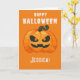 Tarjeta naranja retro de calabaza de Halloween. Araña retro y fantasma en el interior. Personalizable adentro. Por favor, revise nuestra gama de divertidas, coloridas y emocionantes cartas en una variedad de temas !