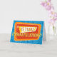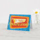 Esta es una tarjeta de 25 años de empleado con colores llamativos de rojo, amarillo naranja y azul. El patrón de fondo, las formas de cuadro de texto, el elemento decorativo y el tipo de letra tienen un divertido aspecto retro. Diseño de tarjetas de Natalie Kinnear