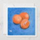 Pintura acrílica imprime la vida de los naranjas mandarines con fondo azul.