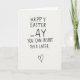 This card features a simple off-white background with a cheeky seasonal phrase set in thick, uppercase black lettering centered on the front. The main line is arranged to read like a familiar greeting at first glance, then it cuts off one key word and follows with a short prompt that invites the reader to mentally fill in the rest. That little “you know what I mean” gap makes it feel like an inside joke shared between close friends or a couple exchanging a teasing look 🐰. The high contrast between the dark letters and the pale backdrop keeps everything easy to read while still feeling intentionally styled. A tiny heart doodle sits beneath the wording, adding a soft romantic hint without taking away the humor 🌷. The text stays in the middle of the card with generous blank space around it, so the message feels like the main event. Just below the final line, a small black heart is drawn in a quick, slightly uneven stroke.