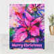 Tarjeta Navidad Acuarela Flor de Pascua Abstracta Rosa