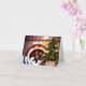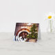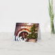 Navidad | Barril de vino y rueda de carro en la nieve, al aire libre con un árbol. Ideal para el entusiasta coleccionista de vino. Tarjeta pintada con belleza. Lista para agregar tu propio mensaje dentro.