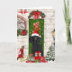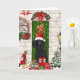 Caniche sentado afuera de una casa decorada con corona de Navidad, el árbol de Navidad es una excelente idea de regalo de Navidad para amantes de los perros.