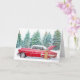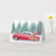 Este viejo coche rojo y trineo dan la sensación vintage de una Navidad de días pasados. Ir a una aventura en trineo durante las fiestas era muy divertido, especialmente con una nevada suave. En la parte trasera del coche hay un niño pequeño tirando de su trineo. Mientras que en el interior hay un viejo saludo de Feliz Navidad.