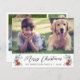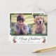 Feliz Navidad 4 tarjeta de vacaciones amigable con el presupuesto. El frente muestra su foto, "Feliz Navidad" en un guión contemporáneo, su nombre familiar en una tipografía moderna simple y acuarelas de flores de poinsettia y vegetación de invierno. Al contrario, añada tres fotos adicionales, tu mensaje de vacaciones y tus nombres.