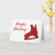 Tarjeta Navidad de hockey sobre hielo con destellos rojos
