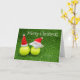 Tarjeta Navidad de tenis con sombrero de Santa en pelota d