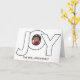 Ilustración de Navidad en blanco y negro con diseño de texto "JOY". Es fácil de personalizar y reemplazar las fotos y el texto con los tuyos. Es posible cambiar el color de fondo y agregar uno diferente al diseño según tu elección.