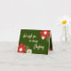 Tarjeta de Navidad floral retro personalizada y adorable sin foto en rojo, verde y crema. Diseño divertido y alegre con un estilo vintage groovy de los 60 y 70 y una estética moderna contemporánea. Cuenta con letras de imprenta que se pueden personalizar. De Kierkegaard Design Studio.