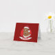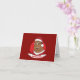 Tarjeta de saludo con el ilustracion de un sonriente joven afroamericano feliz con un disfraz y gorra de Santa Claus rojo y blanco; Navidades diseño de vacaciones con personalizable plantilla de texto para tu nombre o mensaje