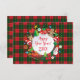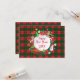 Tarjeta de Felicitación 2025 - Navidad y Feliz Año Nuevo 20XX! Tarjeta de Felicitación de Navidad decorada con símbolos mágicos de Navidad, patrón de elementos de regalos de vacaciones de invierno, muñeco de nieve, árbol de Navidad, bola de Navidad, renos, copos de nieve, estrellas de Navidad y más personajes festivos en adornos cuadrados a cuadros de Navidad, patrón de Escocia (color verde y rojo). Diseño gráfico original de moda. Invitaciones y Papelería > Tarjetas de Felicitación. Presenta Decoración de Vacaciones de Invierno. Diseño de Tarjeta de Felicitación con Monograma con plantilla de texto. Personalízalas añadiendo el nombre. Decoración gráfica en ambos lados.