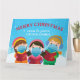 Cute tarjeta navideña con adorables Navidades caroleros con máscaras para luchar contra Covid durante la pandemia. Manténgase a salvo durante la cuarentena de Coronavirus, distanciando socialmente y usando máscaras para sus amigos y familiares. Felices tarjetas de humor de vacaciones. Tarjeta divertida para una empresa o familia.