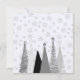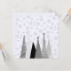 Tarjeta Monocromática de Navidades blancos de invierno. Arte abstracto que representa crujientes copos de nieve blancos y grises de invierno y siluetas de árboles de Navidad. De vuelta personalizada con tipografía elegante.