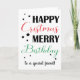 Navidades felices diseño de tarjetas de cumpleaños con un diseño moderno de tipografía para la persona especial nacida el día del Navidad.