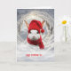 Un lindo conejo blanco sale de su madriguera, vestido con un gorra rojo y una bufanda, ¡para desearte una Feliz Navidad! Simplemente lindo y divertido.