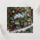 Adorables tarjetas de Navidades que puedes personalizar con tu propio mensaje de vacaciones. El frente es una escena adorable con un tren de época alrededor del árbol de Navidad.