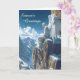 El tarjeta de navidades cuenta con un ángel de cama blanca sentado en una cornisa rocosa en lo alto de las montañas cubiertas de nieve. Personalizar tanto el saludo como el mensaje dentro de la tarjeta a tu gusto.